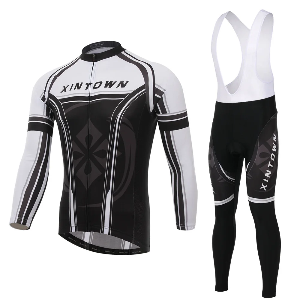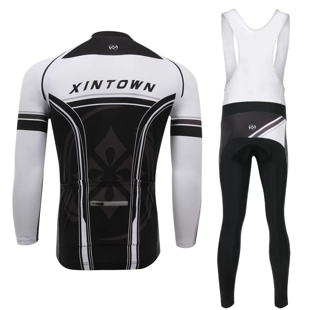 .image of XINTOWN star black bike riding jersey strap long sleeve suit wear bicycle suits fleece wind warm fu