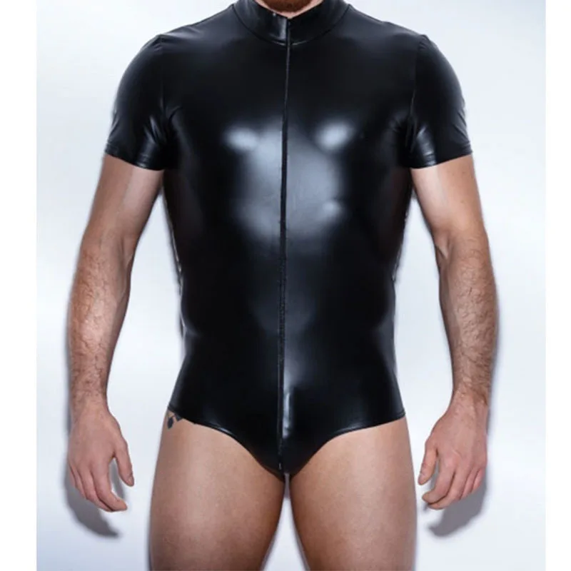 Good Chance for Men's Underwear Lingerie Sexy Black Faux Leather Zipper Bodysuit Latex Catsuit GAY Erotic Wet Look