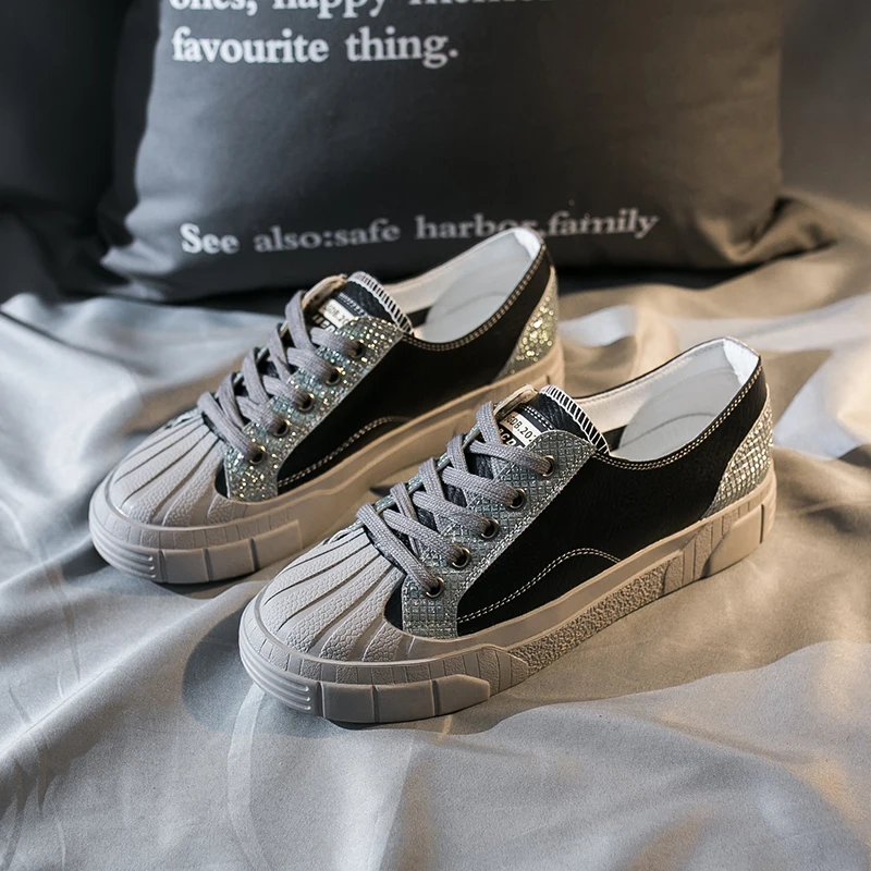 Related Product for Women stylish sneakers spring new color matching lady chic shoes trend black canvas shoes lace up t