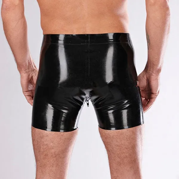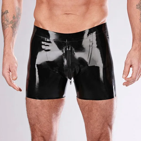 Latex Boxer High Waist Latex Underwear Sexy Men Rubber Lingerie Hot Pants Crotch Zip Two Way Zip