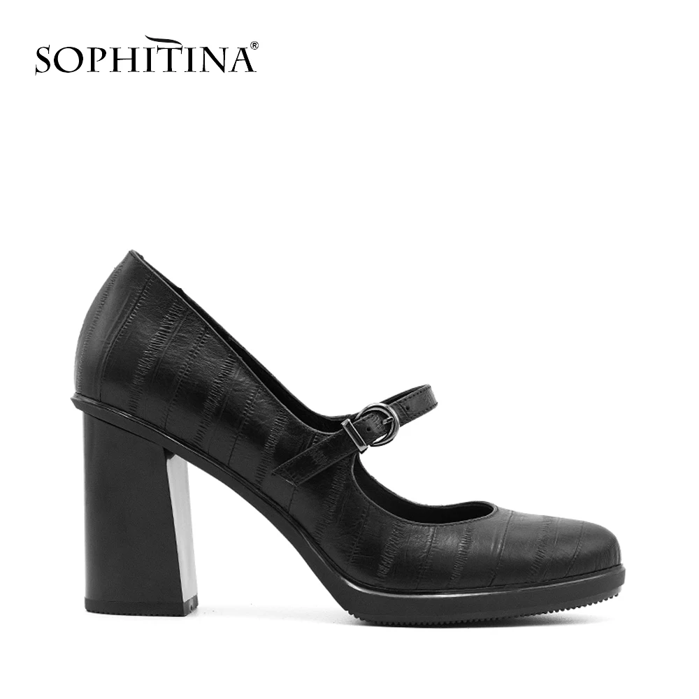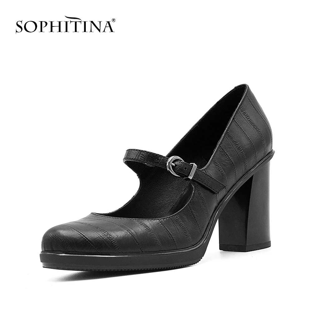 Special Chance of SOPHITINA Brand Genuine Leather Pumps Buckle Strap Comfortable Thick High Heel Shoes Retro Round To