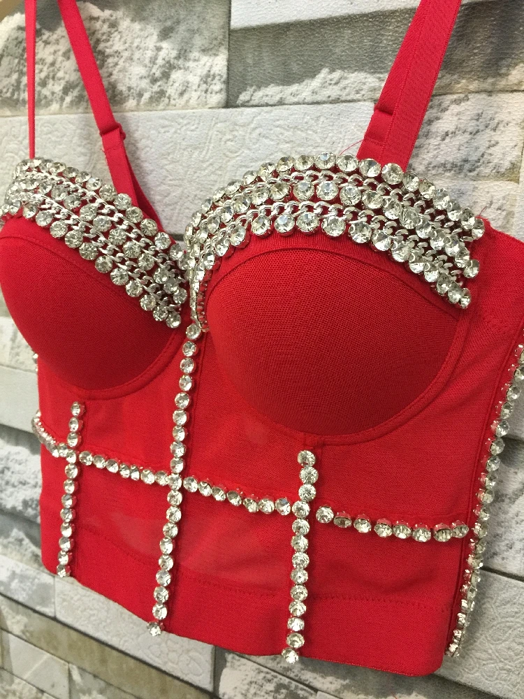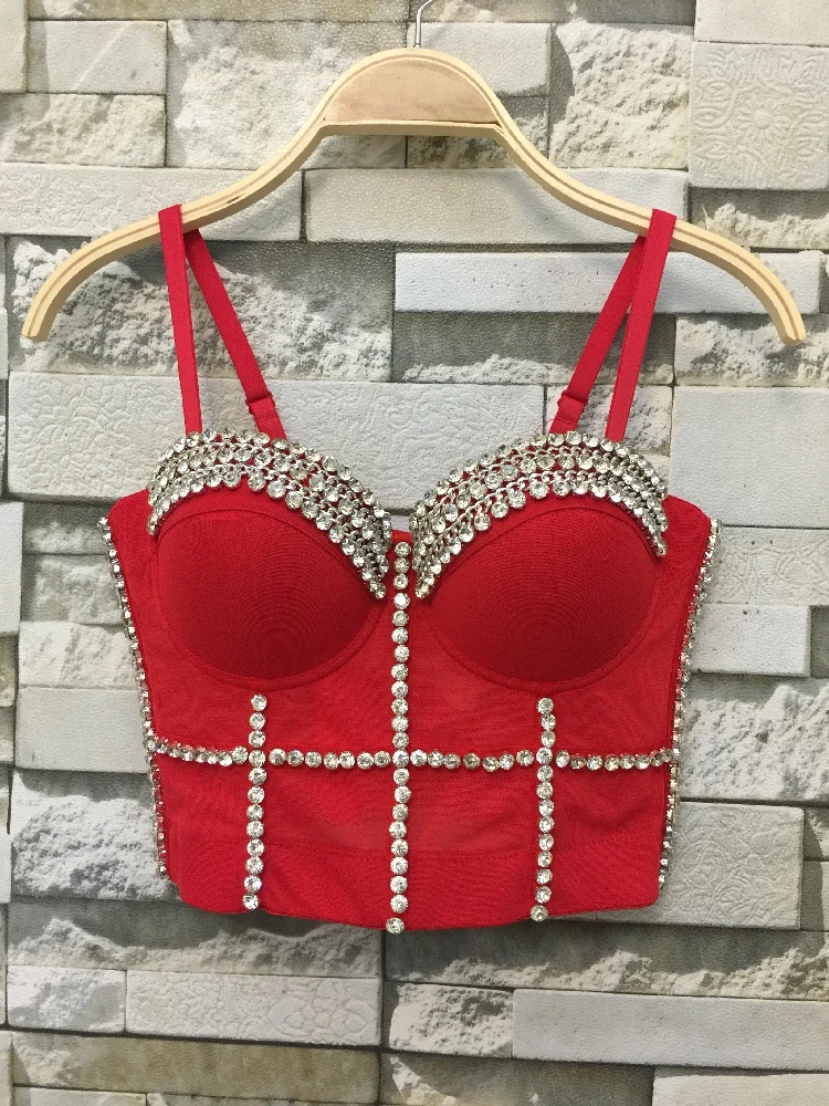 Buy Women Black White Red Rivet Bra Sparkly Rhinestones Bra Underwear Bar DJ Singer Undergarment Stage Right Here and Right Now, Because before price is changed you will just pay for US $34.17, not in Reguler Price at US $40.20. Yap! This is I mean you will Save 15%