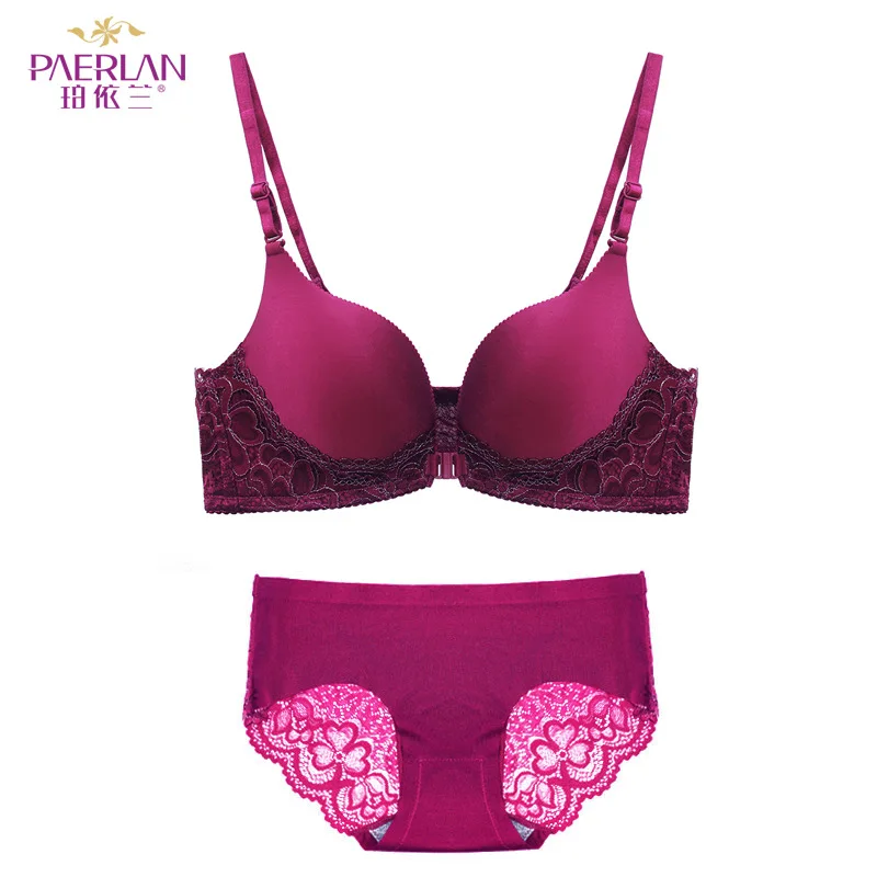 Best Chance for PAERLAN Lingerie Luxury Underwear Solid Color Lace Trim Set Red Panties Heightened Bra Sexy Underwe