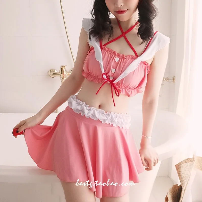 Related Product for Sexy Maid Pink Color Lolita Women Tankinis Swimwear Camisole Set Japanese Kawaii Ruffles Two pieces