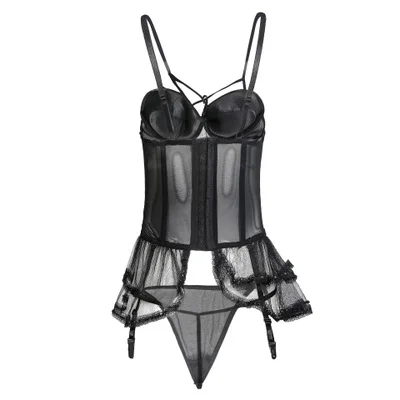Related Product for The new S - L Small breasts gather tight and see-through sexy underwear Corset two piece suit