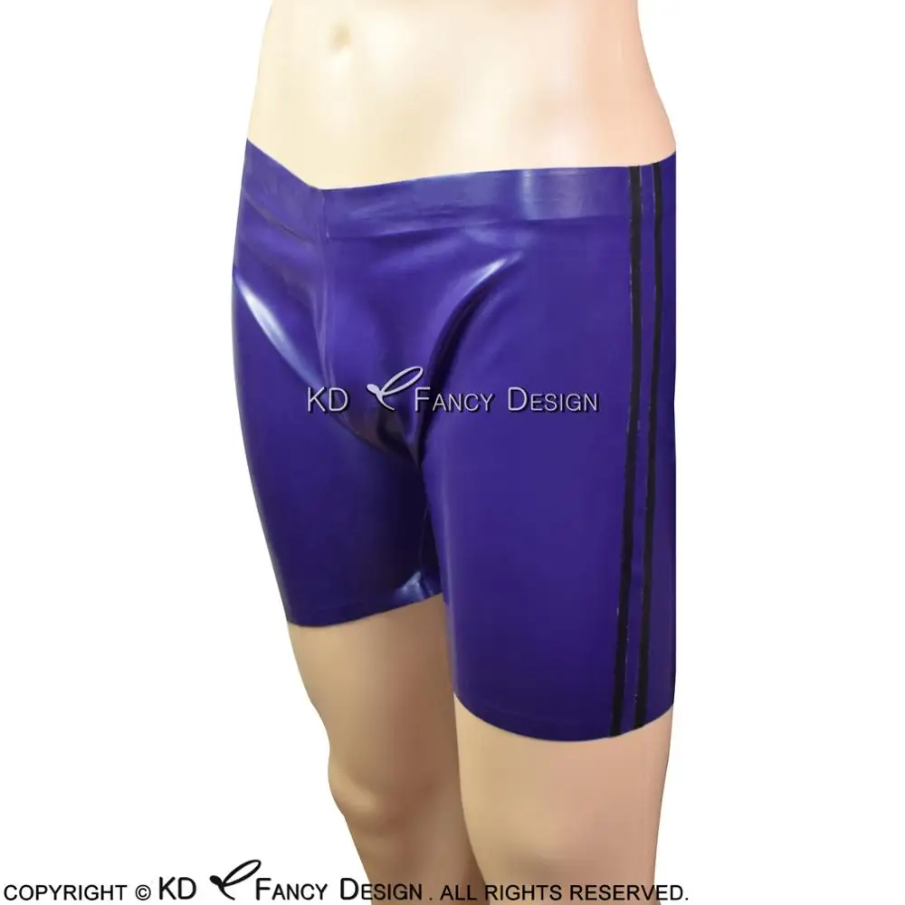 Special Chance of Purple With Black Stripes On Sides Short Latex Boxer Shorts Rubber Underwear Briefs Pants Bottoms D