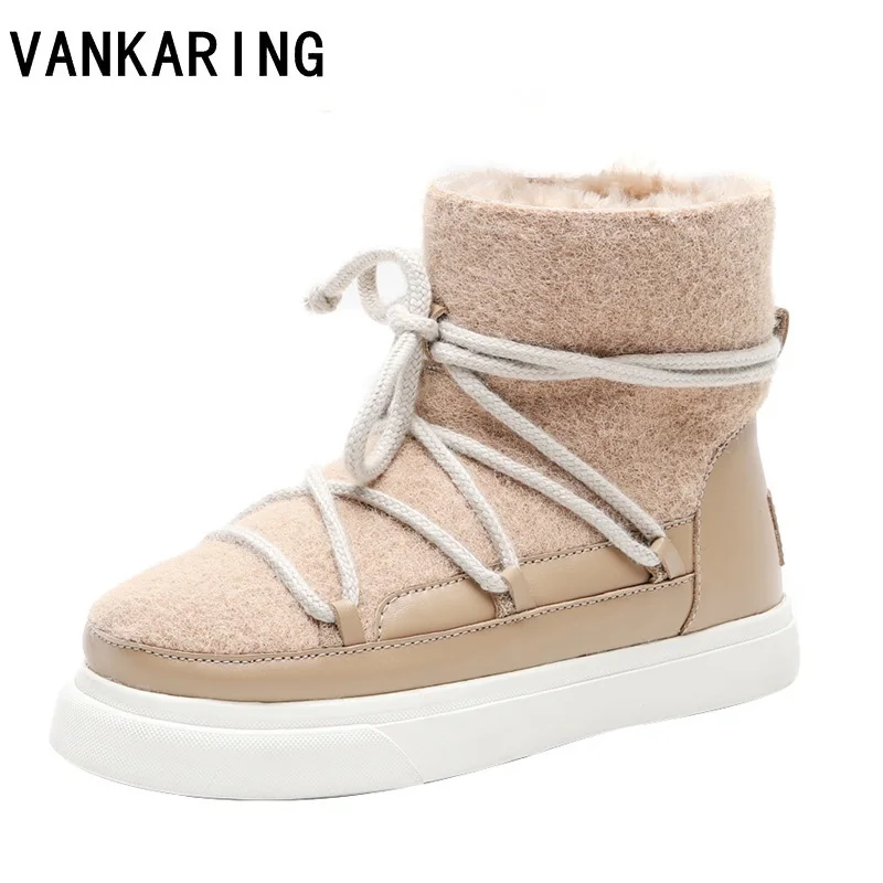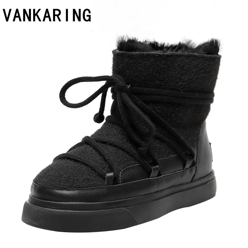 classic women flats ankle boots real leather fur winter warm snow boots woman round-toe female flock zipper casual outdoor shoes