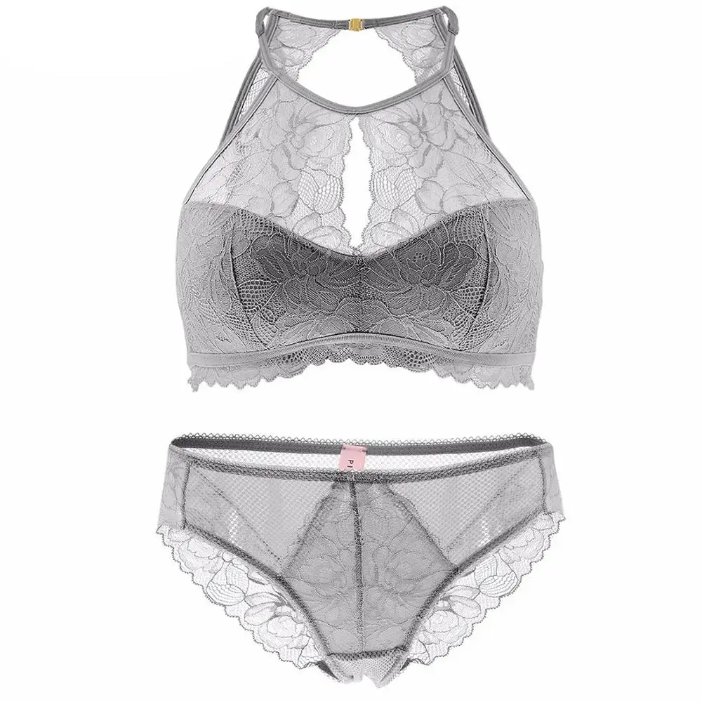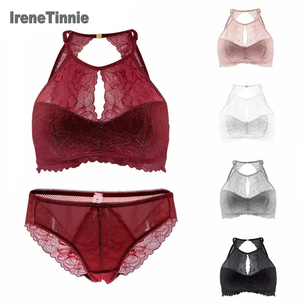 Related Product for IRENE TINNIE Female Lingerie Lace Thin Bra Set Halter Neck Breathable Transparent Lace Briefs Women